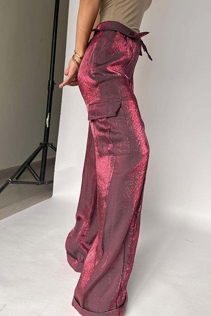 Casual Gradual Change Pocket Loose Mid Waist Straight Bottoms(4 Colors)