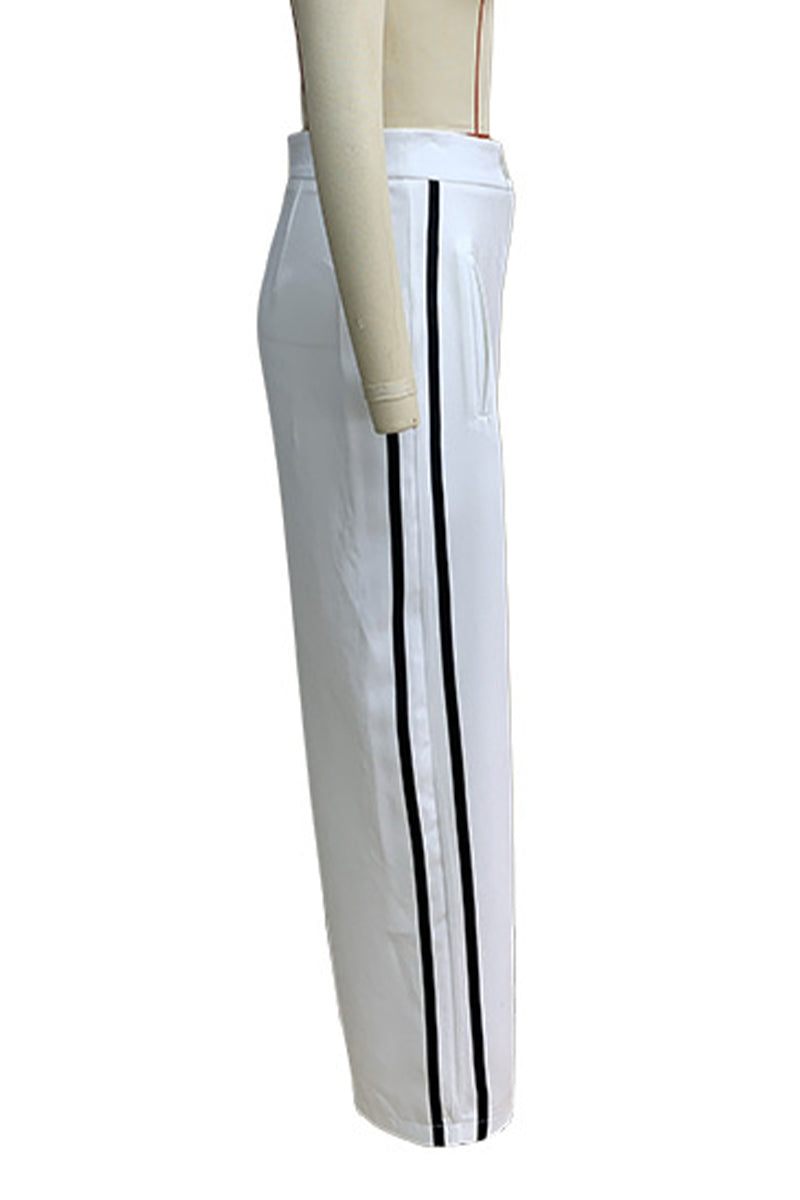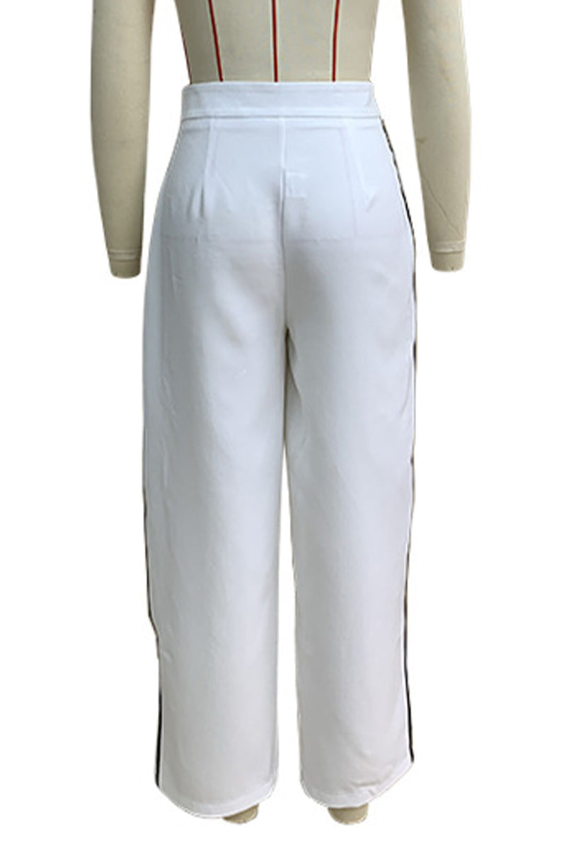 Casual Striped Print Pocket Buttons Patchwork Loose High Waist Straight Patchwork Bottoms