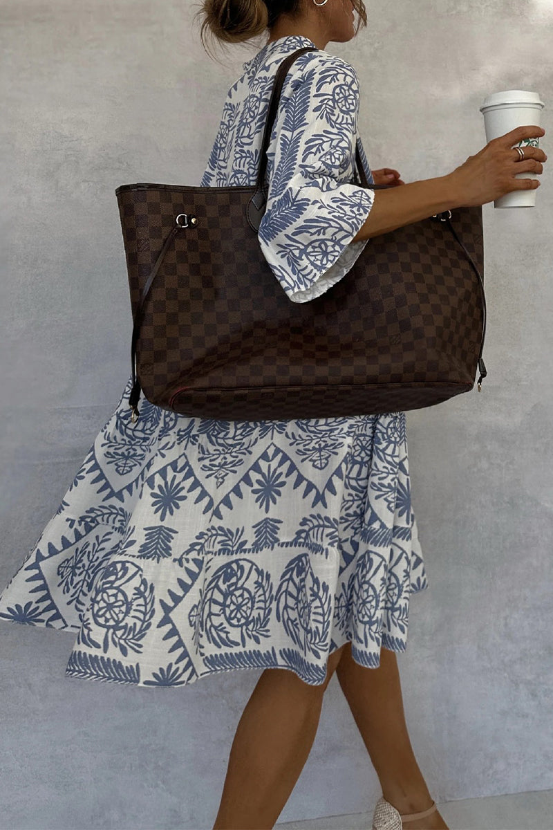 Casual Floral Print Patchwork V Neck A Line Dresses