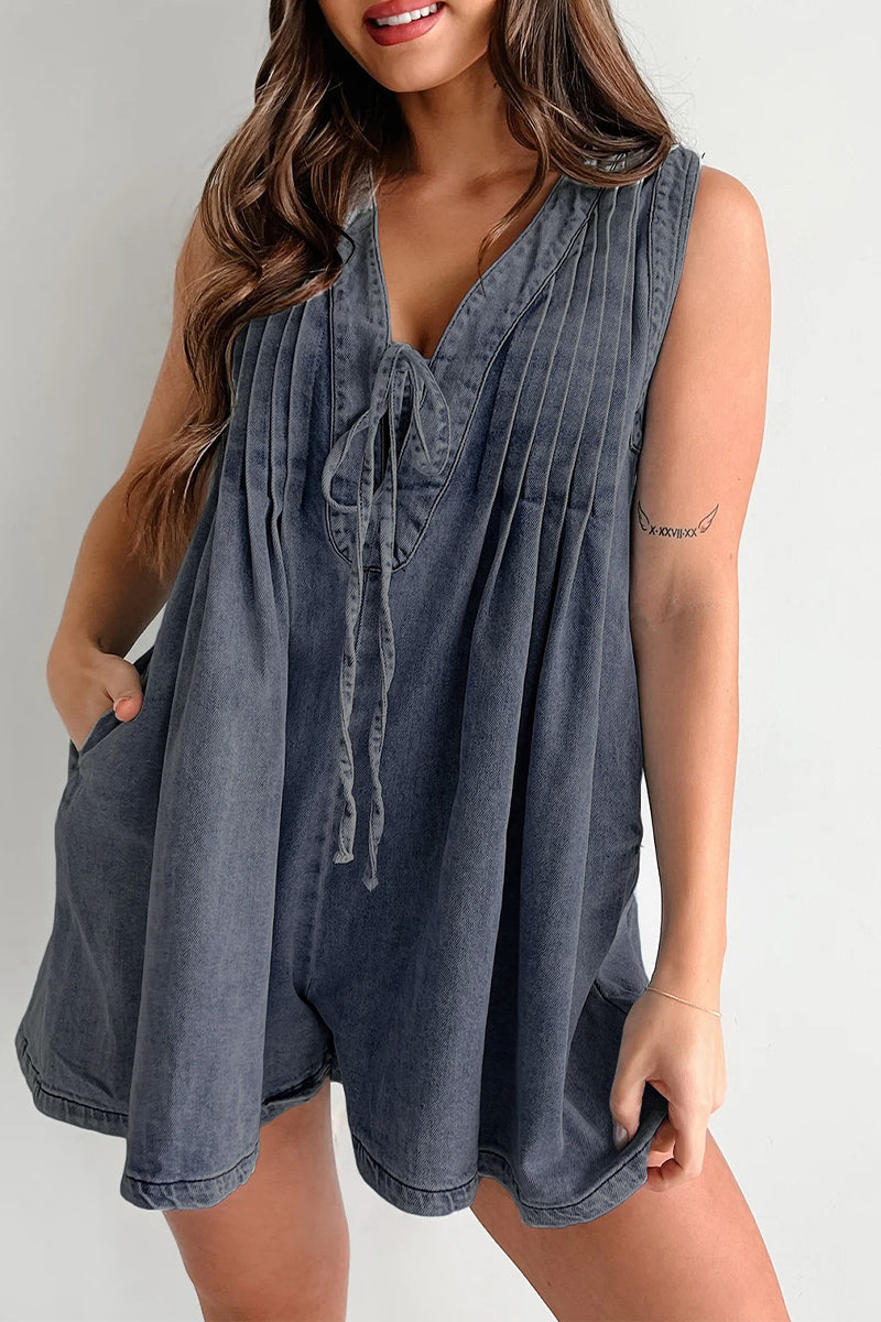 Casual Street Pocket Lace Up V Neck Sleeveless Loose Denim Jumpsuits(9 Colors)