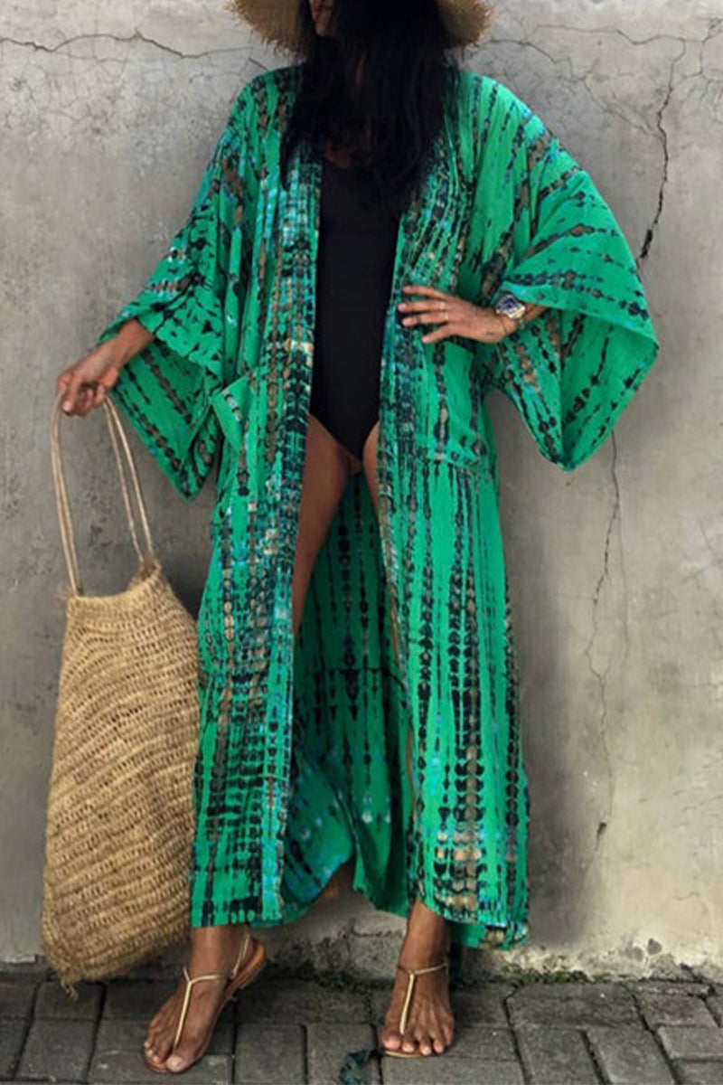 Fashion Vacation Print Frenulum Swimwears Cover Up(4 Colors)