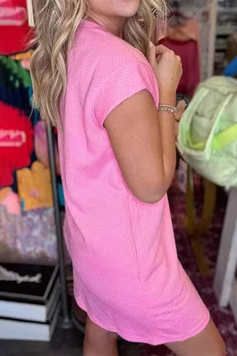 Casual Simplicity Solid Pocket Texture O Neck Short Sleeve Short Sleeve Dress