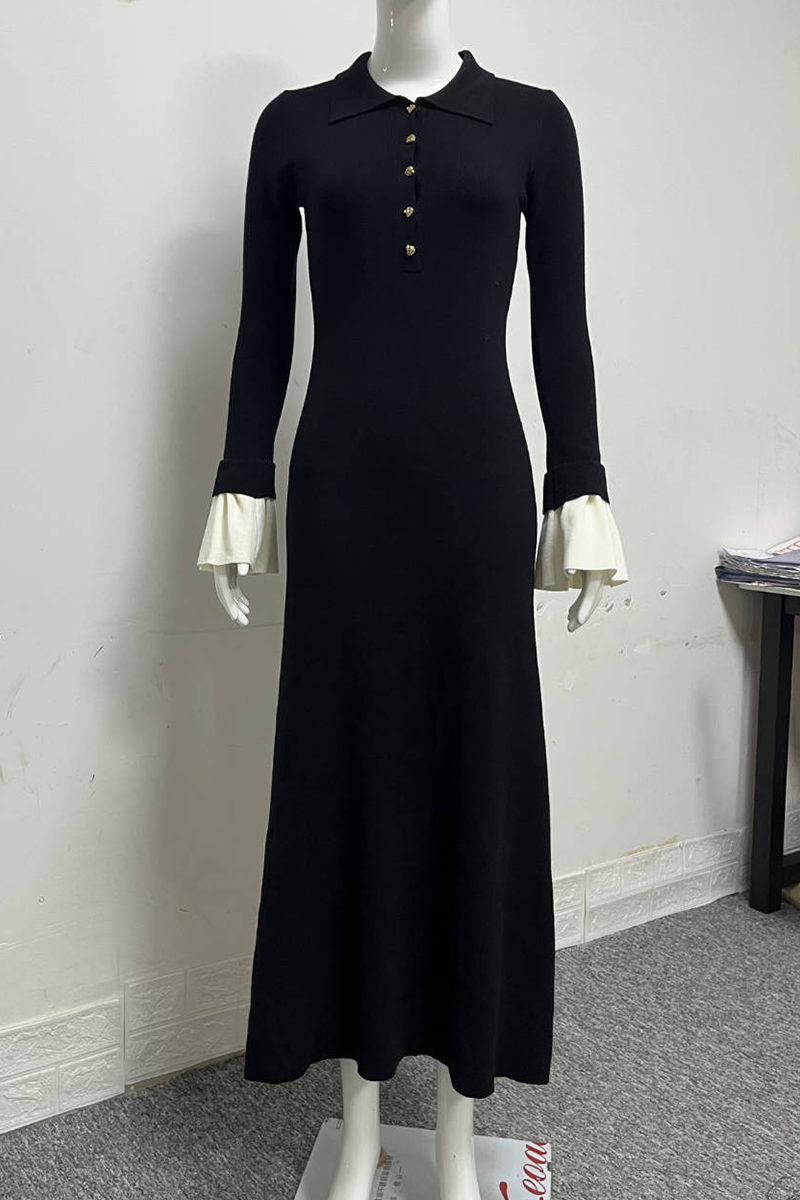 Elegant Ruffle Weave Contrast O Neck Waist Skirt Dresses